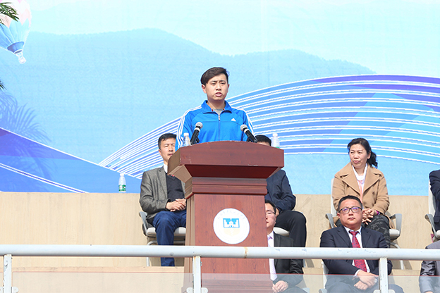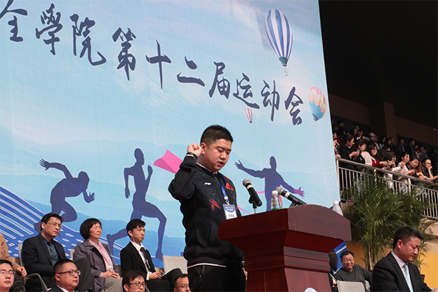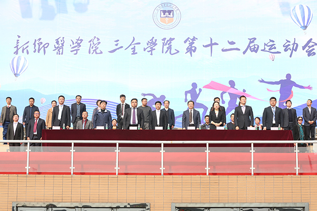 春暖花开,阳光明媚。4月13日上午,我院第十二届运动会在平原校区风雨操场隆重开幕。我院党委书记王志凯,党委副书记王金文、张钢,副院长沈雁霞,教务长杜华贞,后勤总监马波,学务长邱永建等出席运动会。学院各院、系(部),书院和职能部门共3000余名师生共同参加了开幕式。 伴随着《运动员进行曲》的乐声,国旗队、各书院、院系以及教职工代表队迈着整齐有力的步伐依次入场。各书院的方阵队列整齐,气势如虹,展现了师生良好的精神风貌。 在庄严肃穆的国歌声中,本届运动会拉开序幕。 本届运动会组委会主任委员王金文为开幕式致辞。他代表运动会组委会,向精心筹备本届运动会的全体师生表示衷心地感谢,向刻苦训练、积极参赛的运动员致以良好的祝愿,向全体教练员、裁判员致以亲切的问候。王金文说,运动精神是一个民族生命力旺盛的标志,也是社会文明发展进步的体现。而一个合格的学生,不仅是态度端正、基础扎实、成绩优异的专才,更应是在各个领域里挑战自我、攻坚克难、勇攀高峰的通才。秉承“全面实施素质教育、全面适应社会需要、全面培育医学英才”的办学理念,我院已举办十二届运动会,体育运动会已经成为三全学院校园生活的重要组成部分,成为我院全面贯彻党的教育方针、落实素质教育的重要体现。他预祝全体运动员取得优异的成绩。 随后,参赛运动员代表及裁判员代表庄严宣誓。 王志凯宣布新乡医学院三全学院第十二届运动会开幕。 随后举行各书院团体操表演,各项比赛依次进行。据悉,本届运动会共设置两个大项,37个小项赛事,运动会将持续两天。