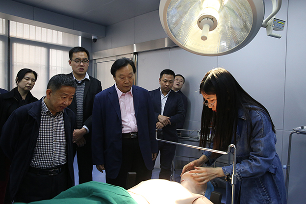 检查组一行首先在学院领导的陪同下参观了我院生物与基础医学实验教学中心、干细胞中心及国际护理培训中心。参观中,检查组专家关切询问了我院实验室使用、专业学生学习等情况。随后检查组来到书院,了解我院“双院”制人才培养模式改革的成效,并详细询问了学院在搭建通识教育与专业教育协同育人发展历程。