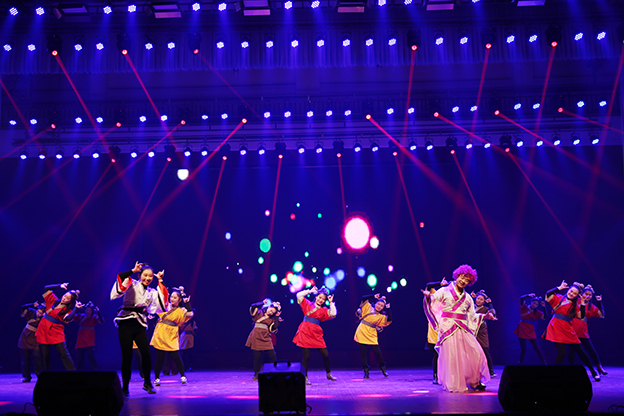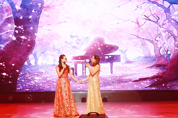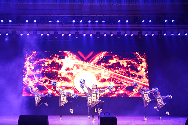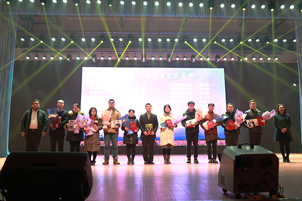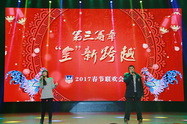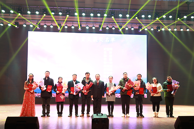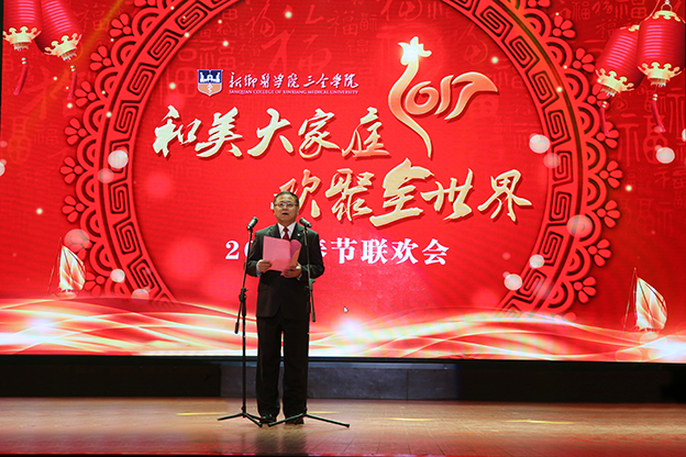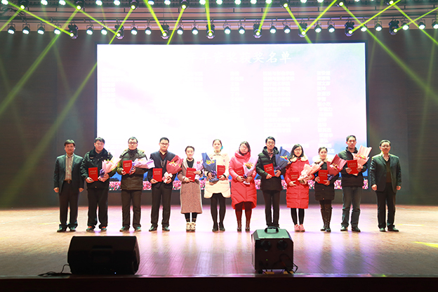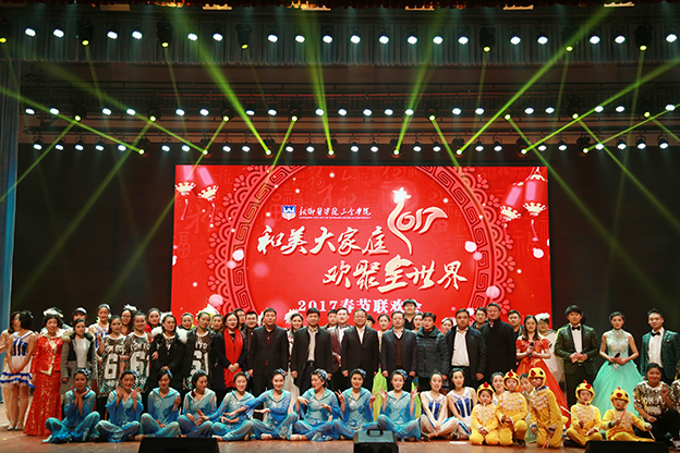 1月17日下午,我院2017“和美大家庭 欢聚’全’世界”教职工春节联欢会在平原校区闻德大礼堂隆重举行。学院领导与广大教职工欢聚一堂,喜迎新春。 一段开场视频带领大家回顾了2016年学院的发展历程,年度大事、师生活动、对外交流、学院荣誉,一幅幅画面令人振奋。优美的《水鼓舞》拉开晚会序幕。 晚会首先颁发了文明家庭、教职工五年和十年年资奖,院领导为获奖者颁发证书和鲜花。 院长杨捷致新春贺辞。他代表学院董事会、党委和行政,向恪尽职守、艰苦奋斗在教学、管理、服务第一线的教职员工表示美好的祝福和衷心的感谢,向坚守在工作岗位上而未能参加晚会的教职工表达敬意和问候。他指出,过去一年是我们各项事业取得全新突破的一年,学院以创建示范性应用技术院校为主线,转型发展初见成效。在新的一年里,要坚持战略转型不动摇,坚持改革创新不动摇,坚持共建和美大家庭不动摇,管好“家事”,做强“家业”,纯正“家风”,共建和美大家庭。 晚会分三个篇章:同襄盛举、共绘蓝图、全新跨越。在大礼堂的舞台上,歌曲、舞蹈、小品、朗诵等丰富多彩的节目依次上演,赢得阵阵掌声。相声《健康生活 我要爱我》以网红“许别林”身体器官罢工为例,倡导“5125” 的健康生活理念;歌曲联唱《时光不老 我们不散》由学院老教授与年轻教师共同演绎,富有年代感的歌曲、戏剧让人回味无穷;舞蹈串烧《巡山舞》、《踩踩踩》、《小鸡小鸡》动感十足,欢快动人的节奏,生动形象的造型引观众捧腹;话剧《中华文明之美之敬业乐业杂谈》,以传统私塾的形式,颂扬了中华民资的传统文化;小品《家的谎言》,慈父花钱买儿陪伴,呼唤儿女们常回家看看、多陪伴父母;朗诵《在你身后陪你左右》,感人的字句、动情的诵读,与背景音乐和视频相得益彰,催人泪下;啦啦操《“全”舞时代》透露出青春的气息,流行歌曲对唱《一想到你呀》温馨暖人,舞蹈《冰菊物语》姿态柔美,优美动人。 晚会在歌曲《相亲相爱一家人》中圆满结束。院领导与全体演职人员合影留念。