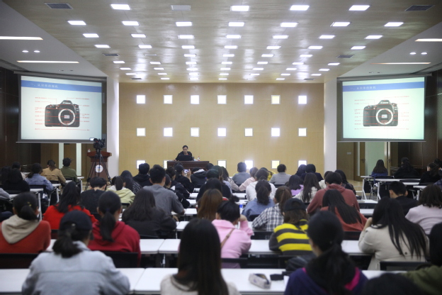 4月25日下午,新乡日报社摄影部主任高志勇受邀在我校行政楼学术报告厅做“摄影基础”专题讲座。党委宣传部全体教师、我校各单位通讯员及百余名学生聆听。 高志勇运用大量的图片和资料,从相机的基本知识逐步深入,多角度、多方面的向师生们传授了摄影知识和技能。高志勇说:“摄影是一门用光的艺术,只有掌握好快门速度、光圈、感光度这三者之间的关系,做到合理曝光,才能拍出一张满意的照片。”之后他通过对比图片,谈到平均测光是最常用的测光模式,它能够兼顾画面的明暗部,最大范围地保留画面细节;曝光补偿与测光息息相关,当测光不准时,可以通过曝光补偿使画面明暗细节得到保证;紧接着,高志勇通过具体分析人物、风景、景物等的拍摄方法,针对性的向大家介绍了Auto档、A(AV)档、S(TV)档、P档等对应的拍摄场景及常用的构图方法。整场讲座,摄影案例丰富,语言风趣,同学们频频点头,不时低头记录。 在实战经验分享环节,高志勇向大家提出建议,在参加活动时,首先要弄清谁是活动的主人公;其次,要树立对照片负责的观念,在拍摄照片时多注意细节;最后是要学会用图片说明问题,从拍摄的图片中体现活动主题。 随后,高志勇与现场同学进行交流,对于大家提出的拍摄过程中遇到的“如何拍出好看的星轨”、“对于光线不足下如何拍摄好一张好的照片”等问题,他从“调节光圈、感光度”、“突出拍摄的重点”等方面做了详细的解答。并建议同学们要善于利用身边的事物,将生活中的点或线巧妙的构思融入照片中。 最后,党委宣传部副部长王德胜对讲座进行总结。他对高老师的精彩讲座表示感谢,并希望同学们在以后的摄影活动中要做到胆大心细、勤于拍照,为后期选图提供足够的素材,拍出信息量丰富且具有价值的照片。 讲座结束后,聆听讲座的师生纷纷表示受益匪浅,丰富的举例不仅使同学们了解了基本的摄影知识,更拓展了同学们的视野,风趣的语言加深了同学们对摄影知识的印象,对进一步促进我校开展宣传工作起到了积极作用。 专家简介: 高志勇,新乡日报社摄影部主任,新华社签约摄影师,河南省新闻摄影协会理事,河南省摄影家协会会员,从事摄影工作近20年,市委主要领导专职摄影师,每年在全国、省、市主流媒体发表作品200余幅。