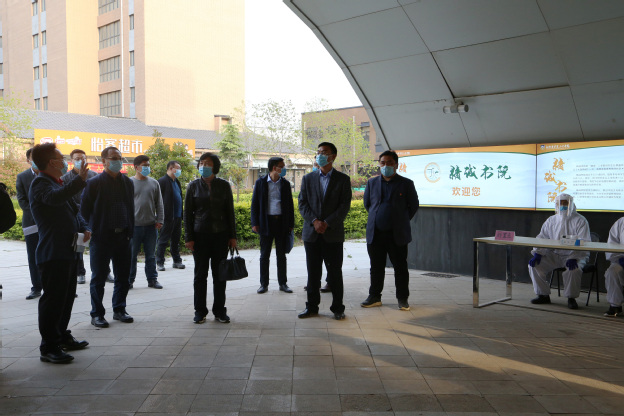 4月22日下午,省教育厅科技信息化处一级调研员施晓春一行2人来我校检查疫情防控及返校复学工作。我校党委书记杨捷,院长胡仕坤,党委副书记张钢,副院长顾欢、袁磊陪同检查,校疫情防控指挥部各工作组相关同志参加。 在校门口,党委保卫部负责人汇报了学校出入管控及安保措施。在校医院,施晓春听取防疫技术服务、消毒物资储备情况汇报,并查看了留观室、发热门诊及防疫物资仓库。领导们实地察看了高层公寓的隔离观察室,听取工作汇报。施晓春一行来到东餐厅,详细了解餐厅消毒情况、开学后就餐管理及食品安全等工作。来到精诚书院,检查学生宿舍消毒、出入管理情况。到第一教学楼,了解学生进出、教室座位安排、场地消毒等情况。施晓春还在行政楼察看了红外测温仪等防控及消毒设备,并查阅了学校返校复学方案等材料。 杨捷、胡仕坤等领导介绍了我校疫情防控、网络教学及开学筹备情况。施晓春对我校办学实力和疫情防控工作给予充分肯定。她指出,三全学院办学理念新,发展速度快,各项工作开展扎实。学校发挥了医学院校优势,消毒物资储备充足,消杀措施到位,工作流程规范,开学筹备认真细致。她强调,在开学前夕,学校要继续严格按照教育厅防控工作相关要求,细化开学方案,抓好落实;精准管控,建立常态化防控机制;开学前加强培训、演练,发现问题要及时整改;做好重点地区、重点人群返校师生的健康管理,确保返校复学工作安全、稳妥、有序进行。