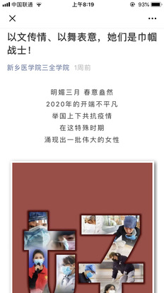 新冠肺炎疫情发生以来,机关党总支严格落实学校疫情防控工作各项要求,齐心协力,同舟共济,以高度的责任感和紧迫感共同战“疫”,坚决防止疫情扩散蔓延。 院办:勇担当不懈怠 履职责显本色 坚决及时高效完成本职工作。疫情期间,院办积极响应学校号召,清晰透明报告本部门人员身体健康状况,不断完善本部门的政治思想教育、业务学习、培训工作。做好集人事、用车、资产、档案管理、印章管理及本部门报账等工作。做好学生来信、来访的接待和解释工作。指导学校网页的信息收集、整理、更新及刊物的编辑、印刷等工作。及时主动地推进与学校相关部门的沟通交流工作。规范文件、报告、总结、计划等的起草、打印、复印及报刊的收发工作。规范签收、分发好邮政局送来的各种报刊邮件及其它印刷品,并协助机关处室分发校内文件、材料等工作,坚决及时高效地完成校领导交办的各项工作任务。 协助其他部门推进防控工作。积极配合学校后勤服务中心,在有限的条件下,多举并措开展防疫、抗疫工作,确保学校内部工作的正常运转。协助教务部创新开展督教、督学、督管的模式方法,保障了网络教学良性运转。积极协助学务部落实“三个责任”,抓紧校内防疫工作,使校园防控各工作有序、有效地开展。 强化宣传与舆论引导。院办通过官方网站、QQ群、微信群等多种媒体平台和宣传途径,持续开展新冠肺炎的防控宣传教育,向师生和学生家长普及疫情防治知识和防控要求,提醒师生尽量不要外出,科学做好防护,形成学院重视、家校联动、共同防控的良好氛围。积极引导师生文明上网,理性判断信息真伪,做到不恐慌、不信谣、不传谣。 工会:在活动中激发责任与担当 工会办公室不忘初心、牢记使命,系统性开展疫情防控工作,加强对健康理念和传染病防控知识宣传,引导教职工正确理性看待疫情,激发教职工的责任担当。 结合防疫实际,有针对性开展“‘全’家人齐心共抗疫情”主题教育活动,通过手绘海报、设计居家锻炼方案、制作知识小视频、知识答题竞赛等理论与实践相结合的形式,增强教职工的思想自觉、政治自觉和行动自觉。 在“新冠防疫知识”手绘海报征集赛中,教职工围绕疫情防控期间典型事迹和感人故事进行创作,抒发了抗击疫情期间难以忘怀的坚守、携手并进的奋战、守望相助的关爱和万众一心的感动。在趣味锻炼方案设计大赛和防疫知识小视频征集中,教职工充分发挥专业优势,将医学小常识融入趣味锻炼中,运用抖音、快手等新媒体制作原创微视频,吸引大家居家主动健身、科学健身,增强自身免疫力。在新冠肺炎防疫知识竞赛中,近七成参赛教职工取得了满分的好成绩,进一步熟悉和掌握了涉及新型冠状肺炎特点及传播方式、办公场所如何防护、居家如何防护、病患如何隔离等知识点。 为丰富疫情隔离期间的家庭生活,我校“春风摇曳女人节·魅丽巾帼半边天”三八节系列活动通过线上方式如期开展。该系列活动共分四个子活动,即“以文传情,最美的她”征文比赛、“视频展示,居家女王”视频比赛、“快乐运动,健身达人”瑜伽线上课程和“内外兼修,遇见最美” 健康直播。“以文传情,最美的她”征文比赛中,仁智书院李志芳老师的《亲爱的孩子,携手战役,与你同在》,将辅导员比做母亲,把学生比作孩子,字里行间充满了对学生的谆谆教导和殷切期盼。 根据省教育厅的相关部署要求,校工会为抗疫一线医务人员家庭开展“您为大家•我帮您家”关爱行动,为驰援湖北医护人员以及本地区投入抗疫的一线医护人员及其家属提供“暖家”服务,以实际行动向他们致敬。另外,校工会多次组织对工作在学校防疫一线的值班人员进行慰问,慰问人员200余人次。 外事部:严防死守做好国际学生管理工作 疫情就是命令,防控就是责任。外事部时刻铭记“外事无小事”,坚持“师生安全第一位”的原则,坚持校外监控和校内管理联动互通原则,扎实推进各项工作落细落实,严防死守,认真细致地把好把牢国际学生防疫工作的重要关口。 遵守管理制度,落实防疫措施。严格执行和规划国际学生返校前、返校中和返校后各项工作;先后发布关于严禁提前返校及开展网络课程的通知,并一对一确认通知到位。学校对全部在籍国际学生实行网格化管理、地毯式排查,点对点掌握120位国际学生的个人情况及健康状况。严格执行疫情排查日报告,密切关注国际疫情动态及学生所在地疫情防控政策,加强学生心理疏导;强化在校国际学生宿舍管理,加强疫情防控知识教育,及时将疫情信息通报推送给全体学生。 网络课堂上线,确保“停课不停学”。积极推进线上课程的开展。外事部先后联系教务部,沟通论证疫情防控期间教学安排;协调教育技术中心组织开展教师平台运用培训;联合教务部、基础医学院、医学工程学院采取三级督查方式跟进教学质量,建立专业教师及辅导员听课及反馈制度,确保了13门课344学时课程稳步开展。 齐心协同抗疫,关怀帮助温暖。外事部加强与后勤服务中心、校医院、党委保卫部、总务部和财务部等部门联动协同,保障学生果蔬食品采购、防疫物资配备等各项工作顺畅运行。学校领导高度重视在校国际学生的安全与稳定,多次前往现场指导部署工作,看望慰问在校学生。国际学生辅导员每日通过语音及视频形式及时