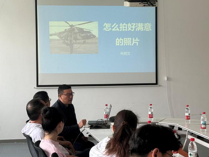 5月30日上午,特邀新乡市摄影协会成员、资深摄影人朱明文老师在平原校区行政楼三楼党员活动室开展摄影专题讲座,校党委副书记杨国平出席活动,与师生共同聆听摄影艺术之美。 朱明文结合自身多年摄影创作经验,以《怎么拍好满意的照片》为题,从如何选景、构图布局等方面,系统阐述了摄影创作的核心要素,并通过大量实例解析了新闻摄影、活动摄影、人文纪实、创意艺术等不同领域的创作技巧。